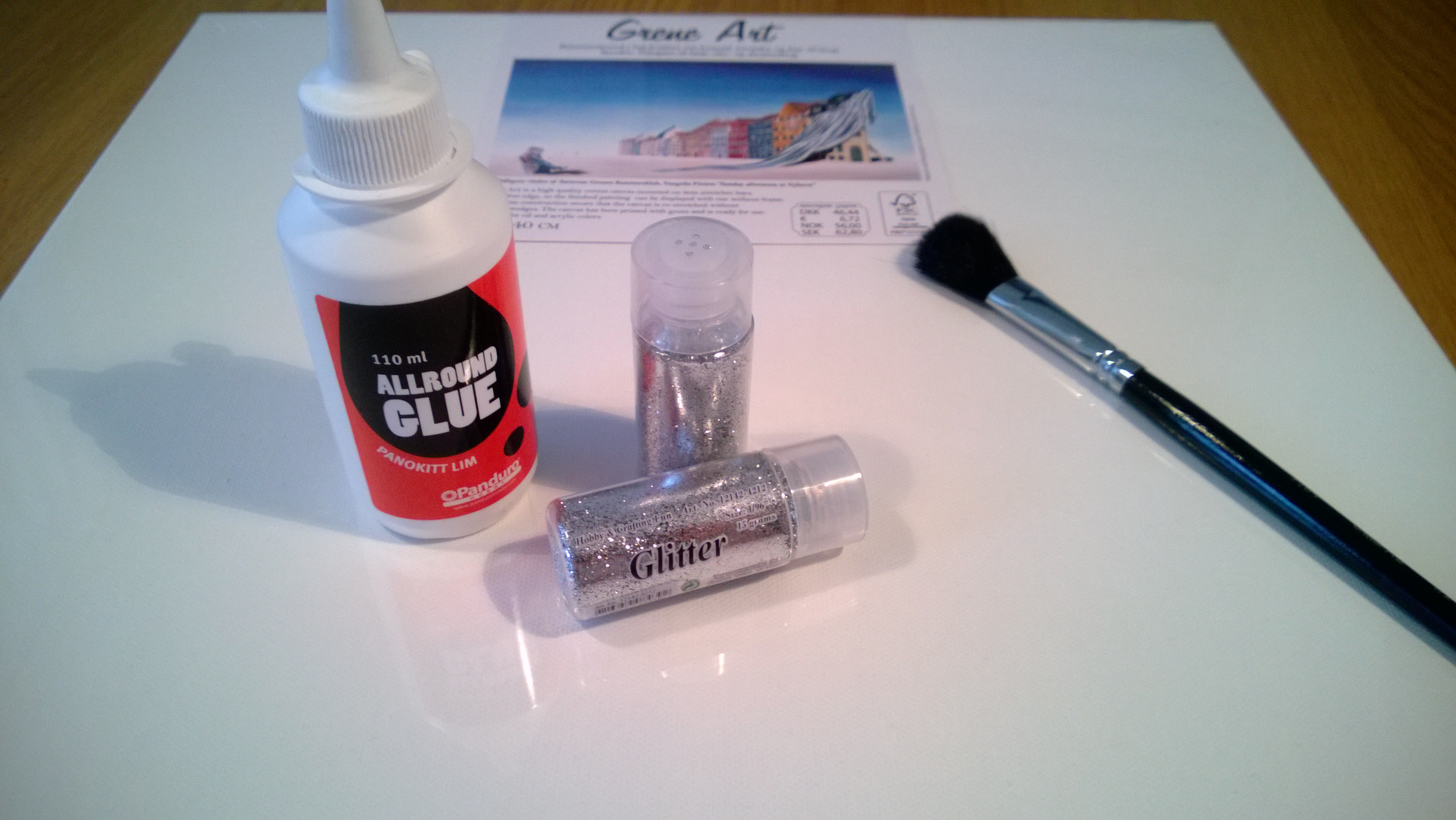 Material: canvas (mine was 40x40cm), universal glue (make sure it has a thin tip), glitter in silver, gold or any other color you like, a brush and pencil.