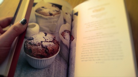Fill into the forms and bake for 12-14mins – the core should still be semi-fluid. Don’t open the oven while baking, or the soufflés will collapse!